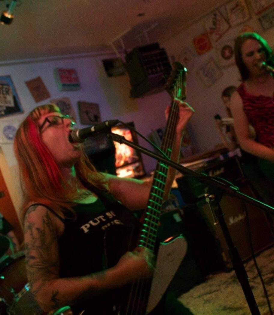 So, what would be my advice for dealing with dumb questions and stereotypes at a show? I by no means have this all figured out but I wish someone would have pulled a young me aside and told me that whatever reason you’re at the show, be there for yourself too. If you want to be at the merch table because you like it, do that. If you want it crystal clear that you are not just the token girl on stage, own it and rock your shit. It will show. Stand up front. Go in the pit or don’t. Show your support for the band or your friends in whatever form that takes. Talk to somebody or soak in the show alone. It’s all ok. Your “place” at a show is wherever you are standing, having the experience you want for yourself. You belong there, it’s your space too.